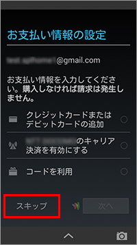 「スキップ」をタップすると、Googleアカウントの登録が中止されます。