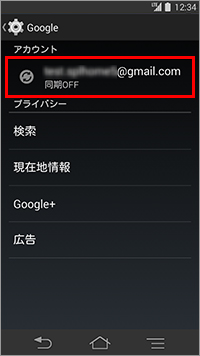 20. 「アカウント」に新しく作成したGoogleのアカウントのGmailアドレスが表示されていることを確認してタップします。
