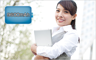 電池長持ちを実現する9600mAhのパワフルなバッテリーを搭載。動画やインターネットを楽しむための十分なパワーを備えています。しかも約519gの軽量ボディで、どこへでも手軽に持ち出せます。