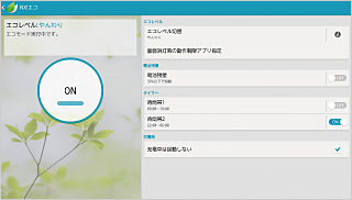 きめ細かな設定で電池を長持ちさせることができます。また指定した時間や電池残量になると自動的にエコモードに切り替わるように設定もできます。