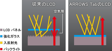 密着構造により、液晶とパネルの間の空気層をなくすことで光の乱反射と拡散を抑えて、色彩をより鮮やかに映し出します。
