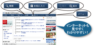 「検索」や画面の「拡大」「縮小」などを分かりやすいアイコンで表示。初めての方でも簡単に楽しく使えます。