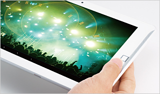 フルHDより高精細なWQXGAディスプレイを採用。タブレット最高クラス(2013年9月現在)の解像度で、目を見張る美しさを体感できます。