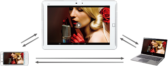 映像データを高速転送する「MHL(注17)」に対応。また、Wi-Fi経由で出力が可能な「Miracast(注18)」にも対応しました。フルHDで撮影した動画や写真、ゲームなどを、テレビに映し出せます。