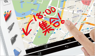 をタッチするだけで、画面をカンタンに保存でき(注13)、そのまま上から手書きしてメール送信やSNSへ投稿することができるので友達に集合場所を教える時などに便利です。