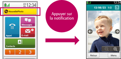 Une notification reçue sur le STYLISTIC S01 prévient l'utilisateur si un des membres de son groupe de partage de photos transfert des photos(2). Avec ce Smartphone, il est vraiment très facile de partager des photos.