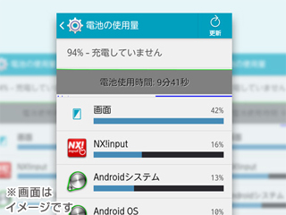 画面消灯中にもバックグラウンドで動作し、電池持ちに影響を与えているアプリをお知らせします。使用しないアプリを停止したり、アンインストールすることで電力の消費を抑えることができます。