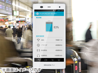たとえば、あなたが充電環境のない場所で電話をかけるとき。現在の電池残量で、通話はもちろん、ブラウザや動画再生などの機能があとどれぐらい使えるか目安の使用可能時間を表示。より安心してスマートフォンを使ってもらうために。