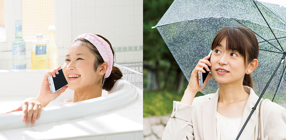 • IPX8とは、常温で水道水の水深1.5mのところに携帯電話を沈め、約30分間放置後に取り出したときに通信機器としての機能を有することを意味します。