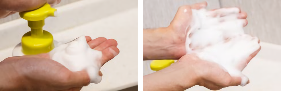 ハンドソープは液体タイプでは無く泡タイプを使おう。日本製であれば成分的には問題ない。直接本体につけるのではなく、まずは手のひらで広げておく