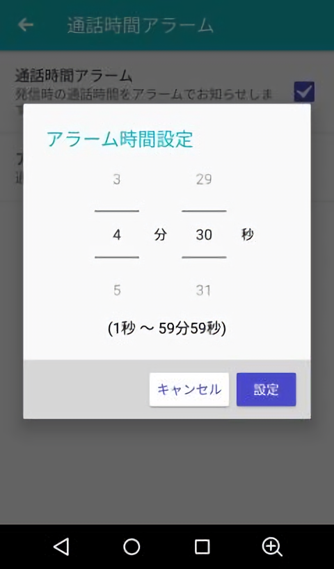 通話アプリから通話時間アラームの時刻を指定する