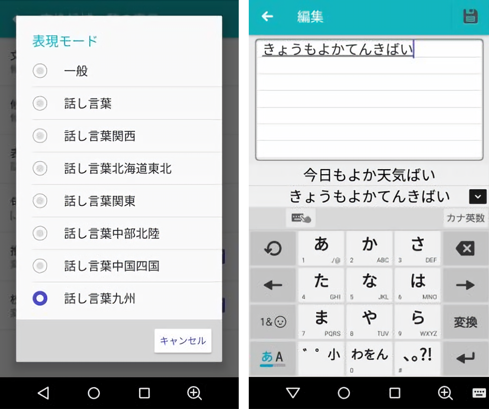 地域ごとの話し言葉が指定できるので、方言の入力にも対応