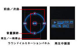 - 再生・停止、スキップやボリュームもラウンドイルミネーションパネルで閉じたままのスマート操作。