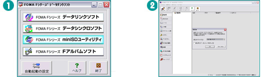 データリンクソフトから「miniSDユーティリティ」を起動します。「読み込み」でマイコンピュータに表示されるF902iSのドライブ番号(例:「F:リムーバブルディスク」)を選択しましょう。