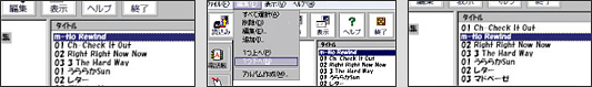 この曲順を変更する場合、曲を選択し「編集」メニューから「1つ上へ」または「1つ下へ」を選びます。