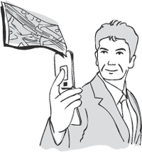 メールで簡単に、自分の今いる位置を送ることができます。メールの作成中に、メニューから[位置情報貼付け]を選ぶだけ。らくらくホンIV(F883iES)以降の機種がGPSに対応しています。