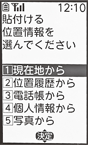 GPS搭載の機種なら、自分が今いる場所の地図をメールで送れます。