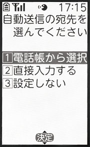 自動送信メールを設定する]で歩数を自動メールで送る相手を選びます。