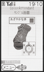 色を調べたいものに合わせて写真を撮ると、画面上に色の情報(例:あざやかな赤など)を表示するiアプリです。色名を音声で読み上げることもできるので、目の不自由な方にもとても便利です。iモードメーカー公式サイト「@Fケータイ応援団」より無料でダウンロードできます。