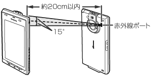 - 赤外線の通信距離は約20cm以内でご利用ください。また、連絡先の送受信が完了するまで、赤外線ポートを向き合わせたまま動かさないでください。