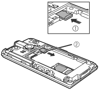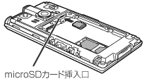 microSDカードの金属端子面を下にして、図の向きで挿入口にロックするまで差し込む