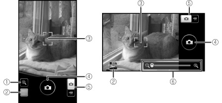 | パノラマ撮影 | シャッターボタンを押した(タップした)あと、緑と白のパノラマフレームが重なるようにカメラを水平/垂直方向に移動させてパノラマ写真を撮影します。 |