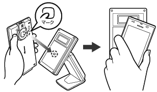 マークはFOMA端末の中心部ではなくカメラ付近にあるため、かざす位置にご注意ください。