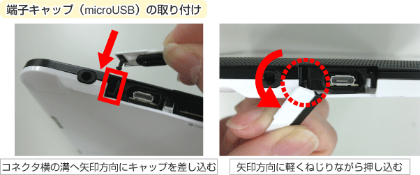 | 16 | 端子キャップ(microUSB)が外れたときの取り付け方です。 |