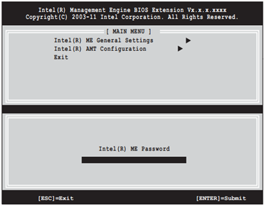 - カーソルキーで「Exit」または「MEBx Exit」を選択し、【Enter】キーを押します。