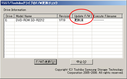東芝製ドライブ用ファームウェアのアップデート手順