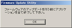 [中止]ボタンをクリックするとファームウェアをアップデートせずに本プログラムを終了します。