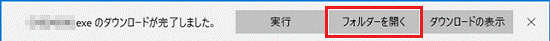 - ダウンロードが完了しました。」と表示された場合は、「フォルダーを開く」ボタンをクリックします。