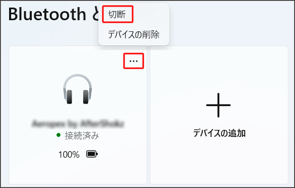 - 「…」をクリックし、表示されたメニューの「デバイスの削除」をクリックします。
