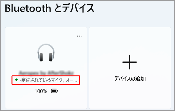 - 「接続されているマイク、オーディオ」(Windows 11の場合)/「音声、音楽に接続済み」(Windows 10の場合):Bluetoothヘッドホンは使用できます。