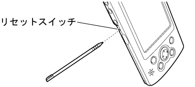 通常のリセットを行う場合は、次の図のように、本体左側面のリセットスイッチをスタイラスペンで押します。