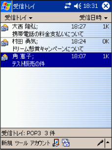 - タップすると、内容が表示されます。タップしたまま押さえると、ポップアップメニューが表示され、メールの削除や転送、返信などの操作を行えます。