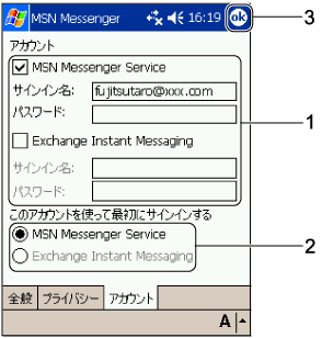 PassportアカウントまたはMicrosoft Exchange電子メールアカウントを取得した後、MSN Messengerの設定を行います。