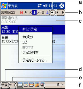 その日一日の予定がタイムテーブル上に表示されます。 |