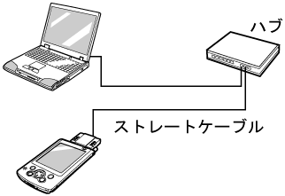 2台の機器間を直接接続します。この場合、使用するLANケーブルは「クロスケーブル」という種類になります。