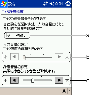 チェックボックスがオンの状態 にすると、入力音量に応じて自動的に音量を調節します。