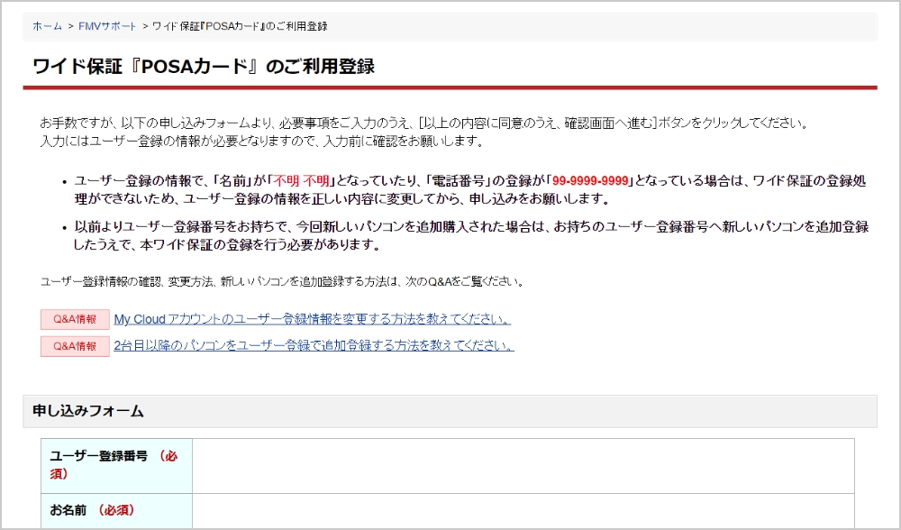② ワイド保証【POSA】/FMV LOOX Premium Care【POSA】の利用登録(パソコンと同時購入された場合)