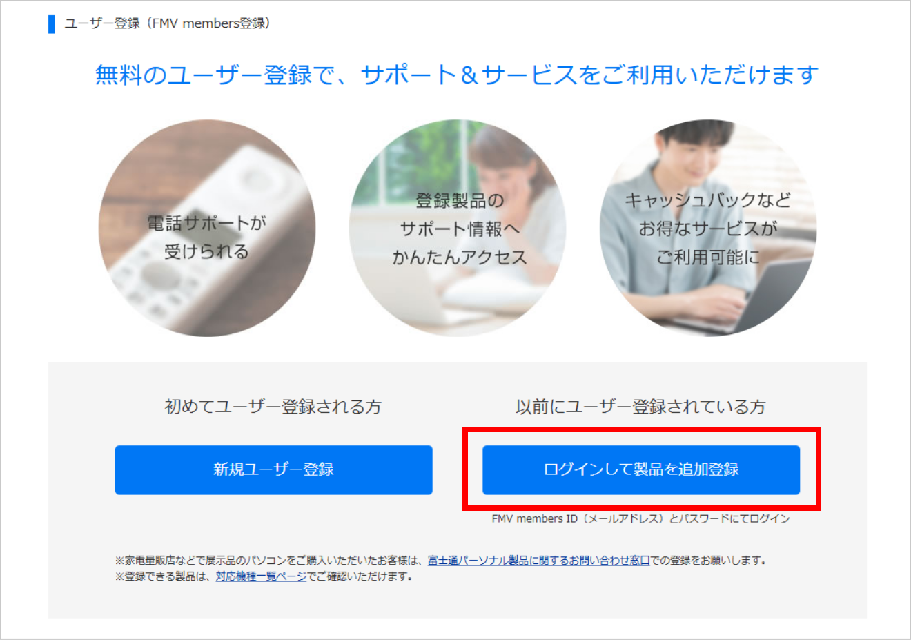 ユーザー登録(FMV members登録&製品登録)はこちらから