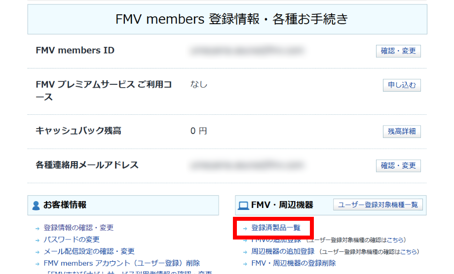 FMVマイページからの登録情報確認・変更はこちらから FMVマイページからの