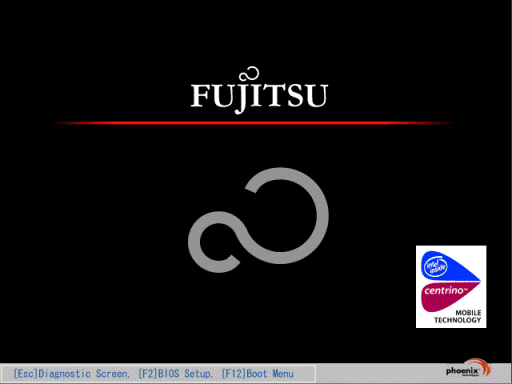 - 「FUJITSU」のロゴが表示されたら、【F12】キーを押します。