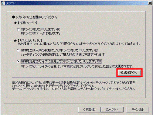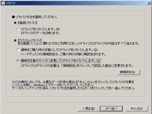 このC ドライブとD ドライブの割り当て量(領域)は、リカバリを行うときに変更することができます。