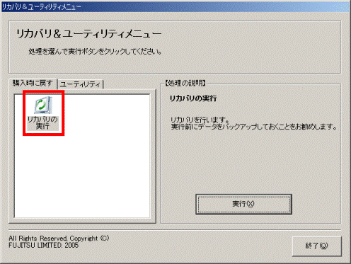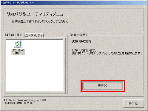 お使いの環境により、時間がかかります。 - 「リカバリが完了しました。」と表示されます。