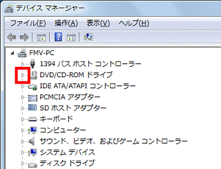 「DVD/CD-ROM ドライブ」の左にある、三角をクリックします。