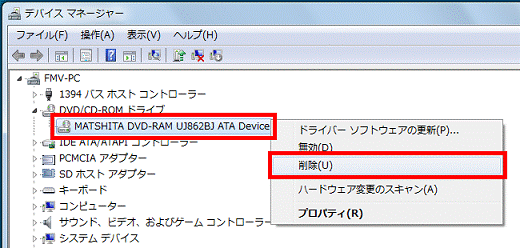 ハードウェアの問題や、Windows のシステム上の問題によって、CD/DVDドライブが認識できてない場合は、ドライバーを削除すると再インストールできません。