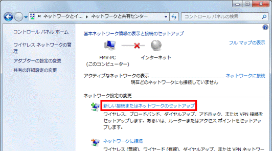 「新しい接続またはネットワークのセットアップ」をクリックします。