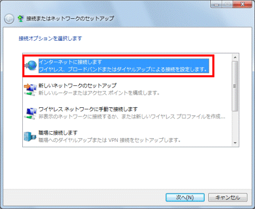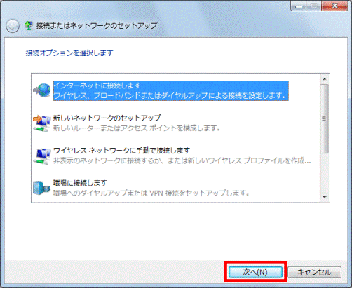 接続オプションの一覧から、「インターネットに接続します」をクリックします。